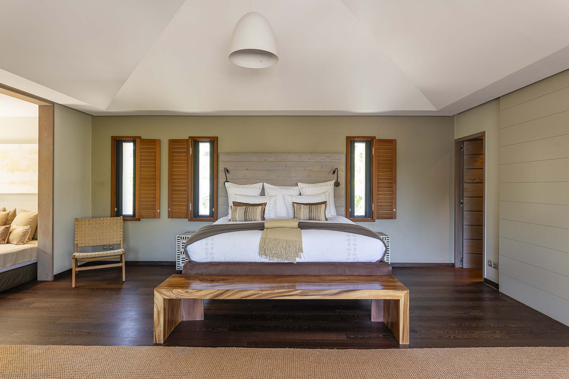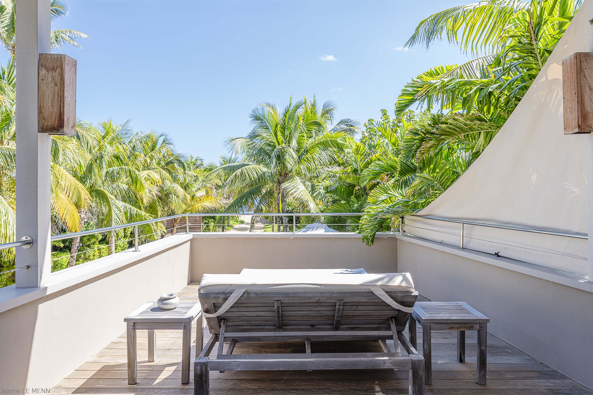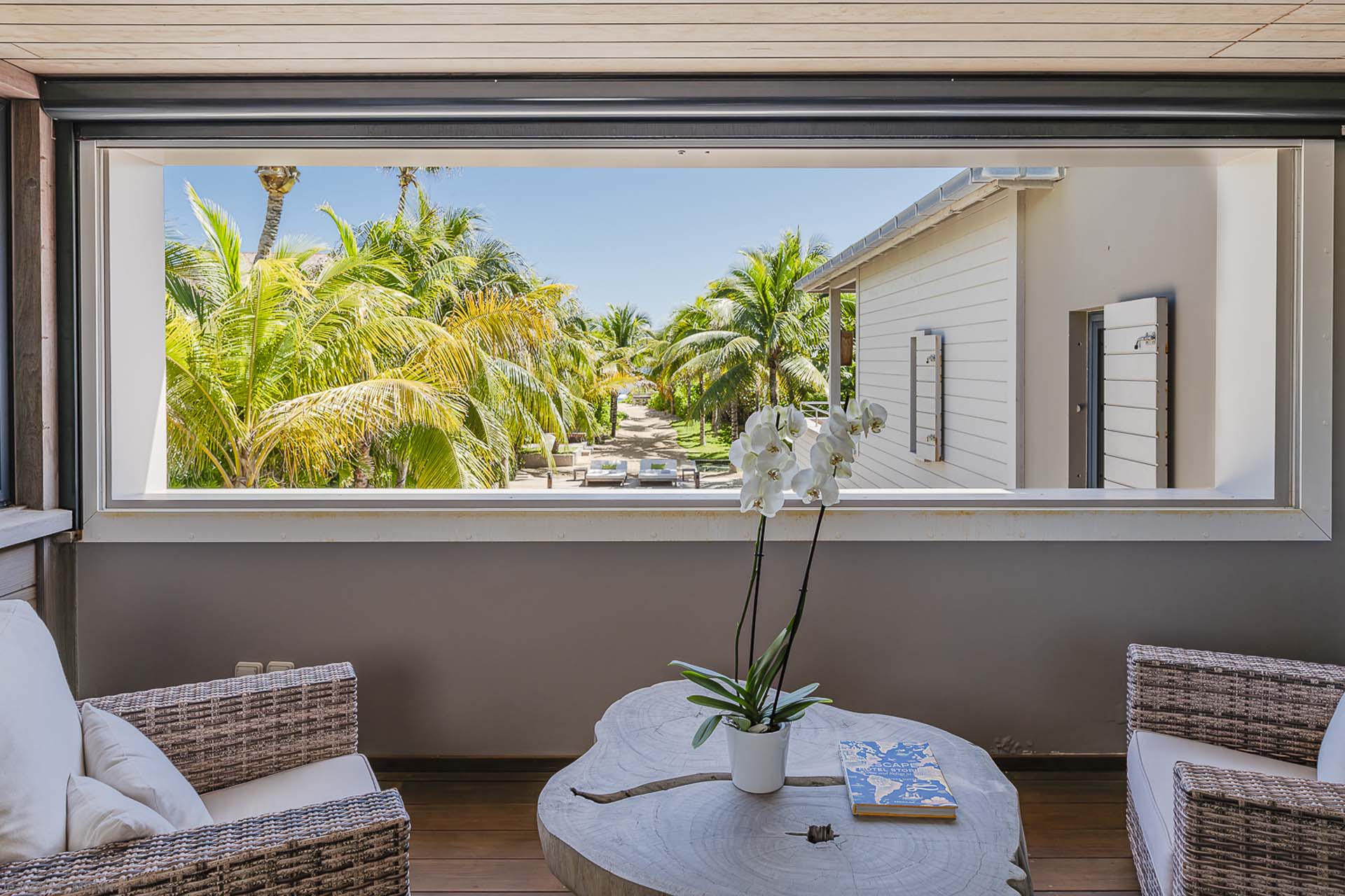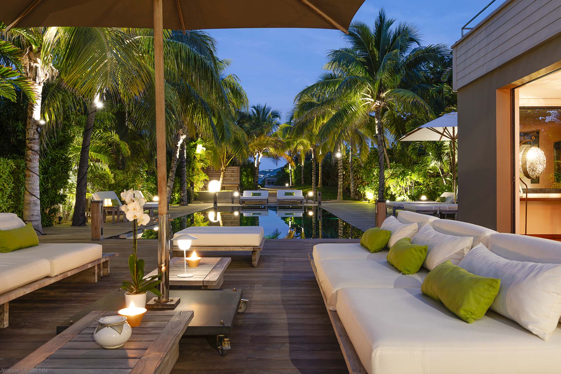 Son heureux propriétaire s’est donc fait plaisir et a concentré dans cette villa moderne toute neuve, tous ses désirs. De grands decks en bois exotiques finissent au pied d’un sentier en sable conduisant au bord de la mer. Une grande piscine chauffée entourée de palmiers, est orientée dans l’axe de la vue. Les grandes baies vitrées du salon climatisé, s’ouvrent sur un immense deck aménagé avec des transats… La chambre principale comprend un hammam, une salle de bain avec une baignoire surplombant le deck et la piscine, et un salon privé avec un écran plat. Enfin, toutes les chambres ont soit une vue sur la mer, soit une vue sur la piscine et le deck.