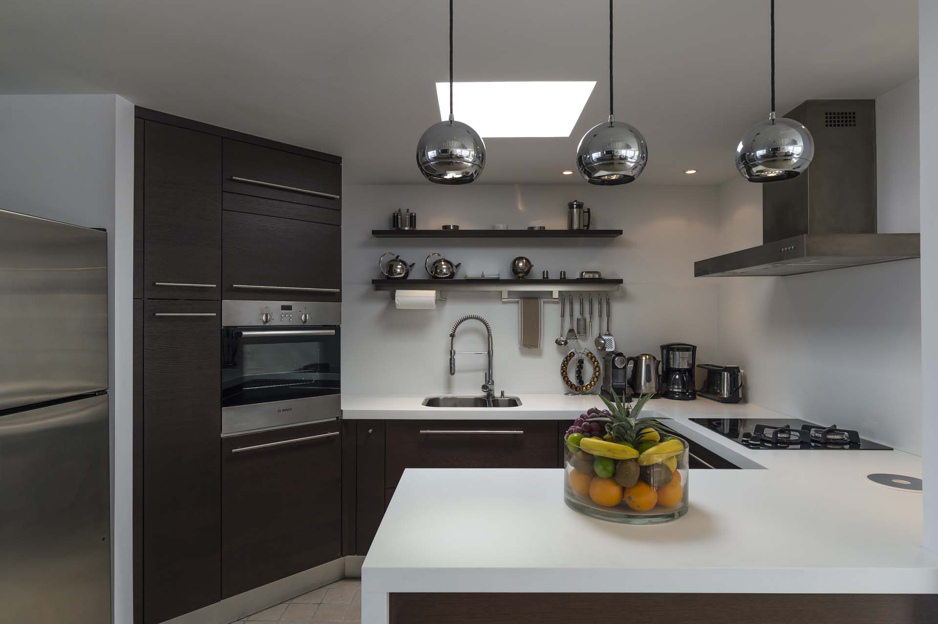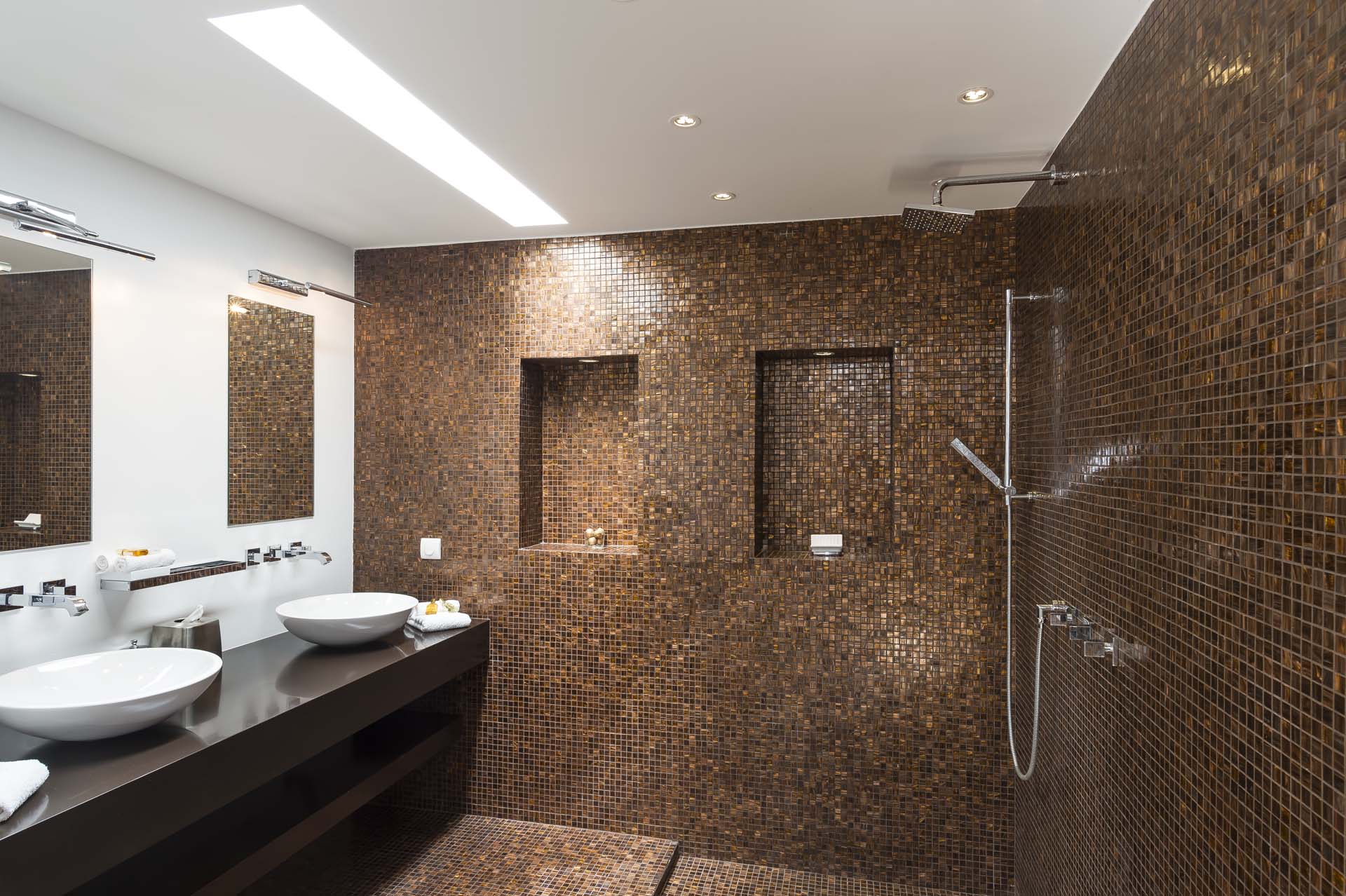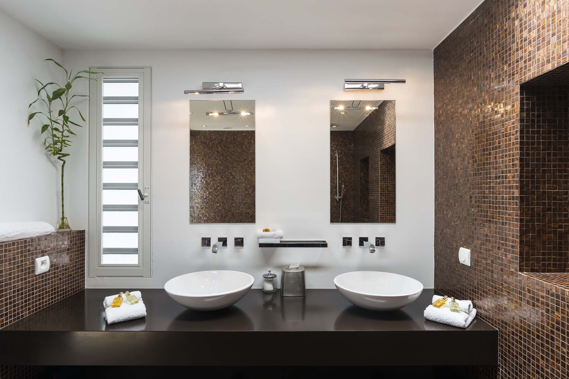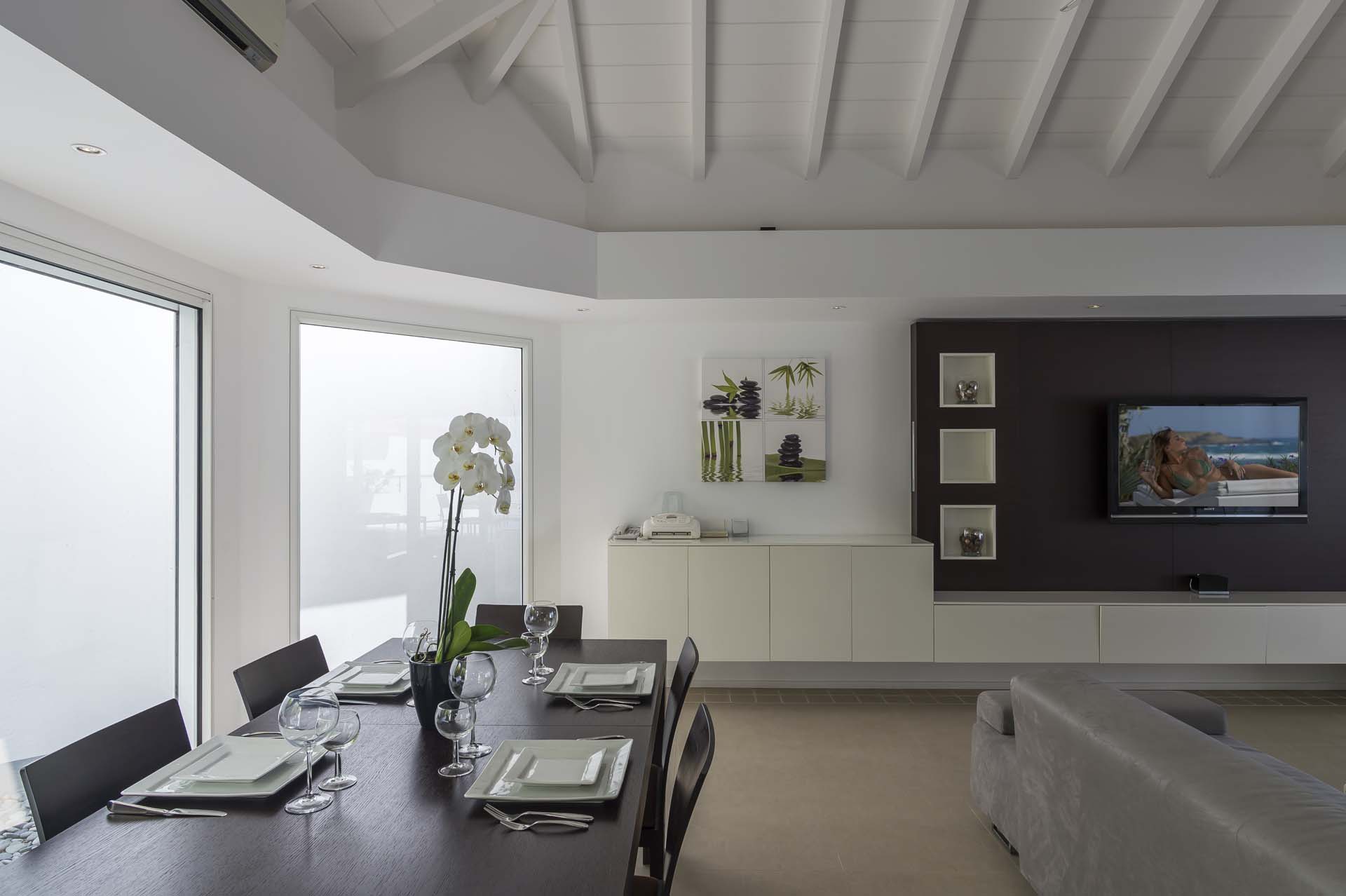 La décoration est très contemporaine, et pour plus de confort, le salon climatisé.
