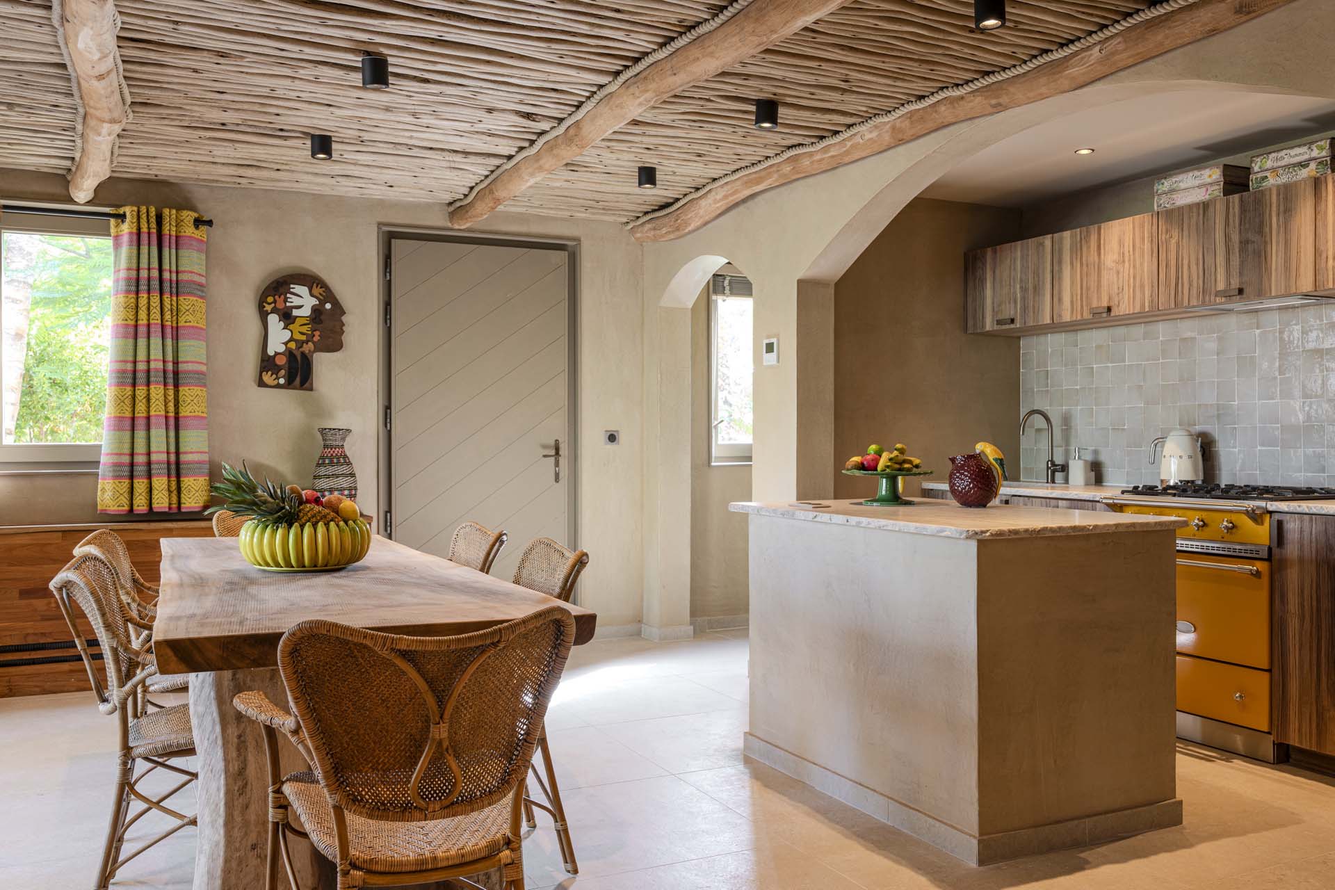 La villa se compose d’un séjour avec cuisine équipée s’ouvrant sur une terrasse avec piscine chauffée, transats et table extérieur idéale pour profiter du petit-déjeuner continental inclus tous les matins. Le tout avec une vue sur la piscine et la végétation tropical environnante.