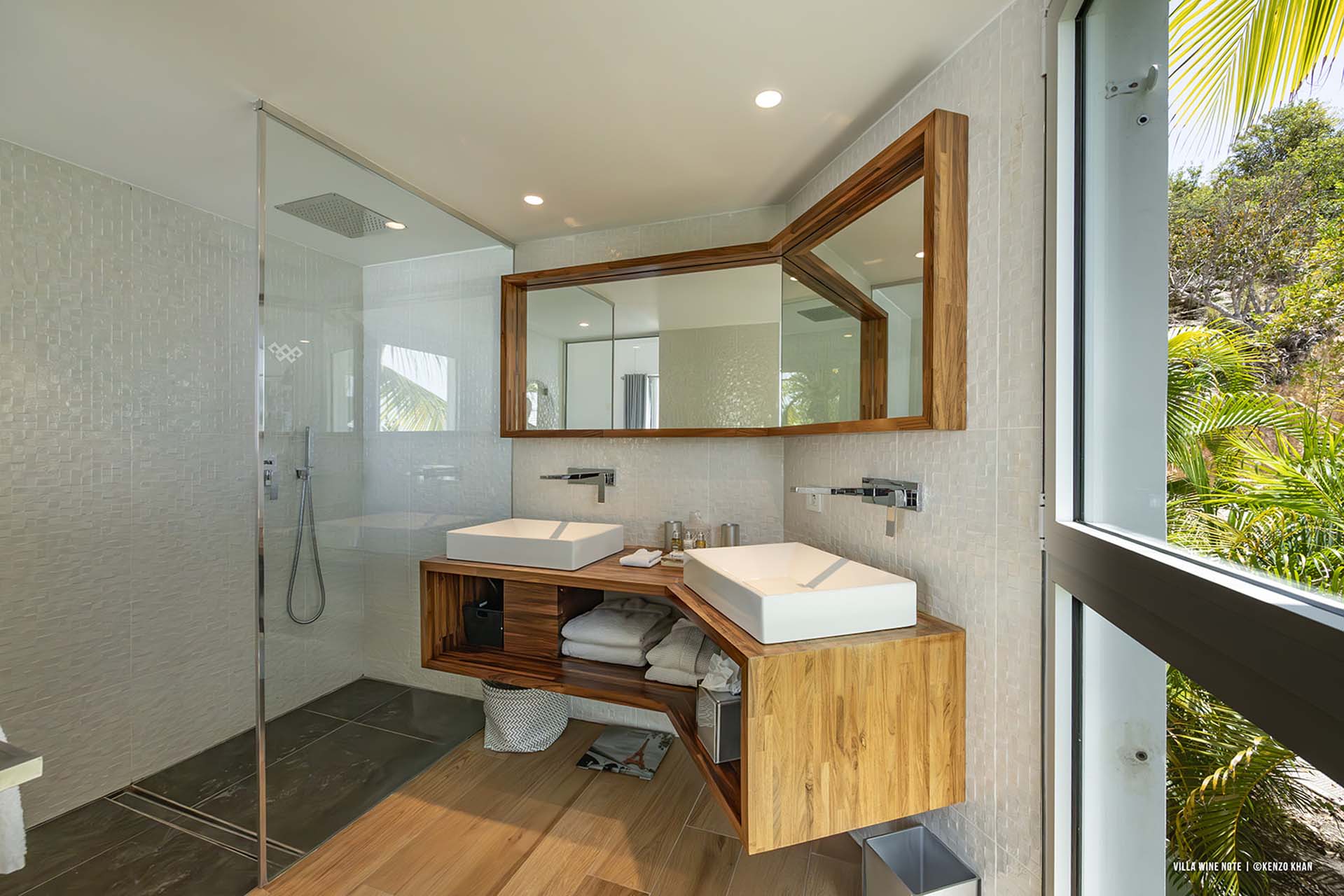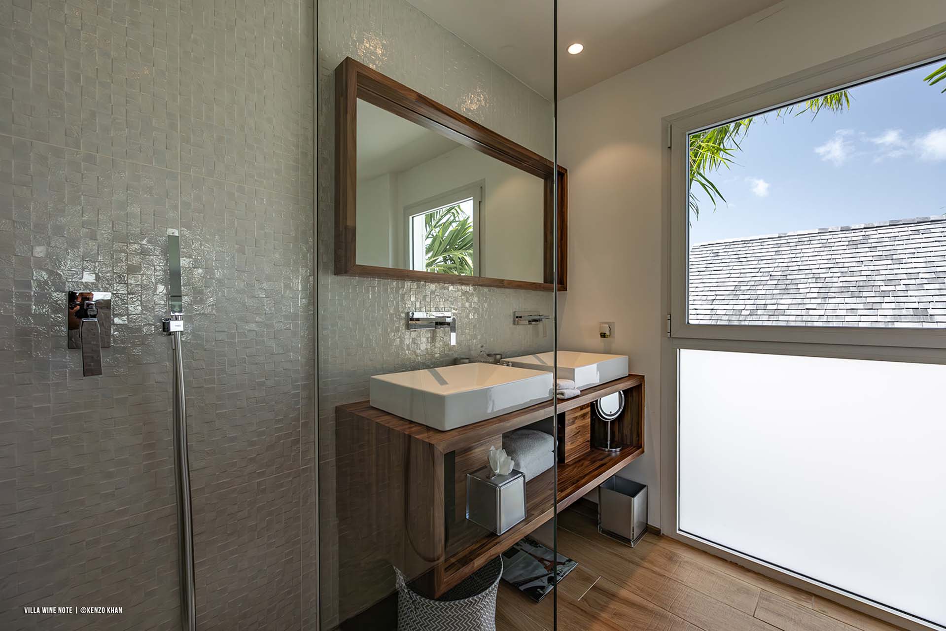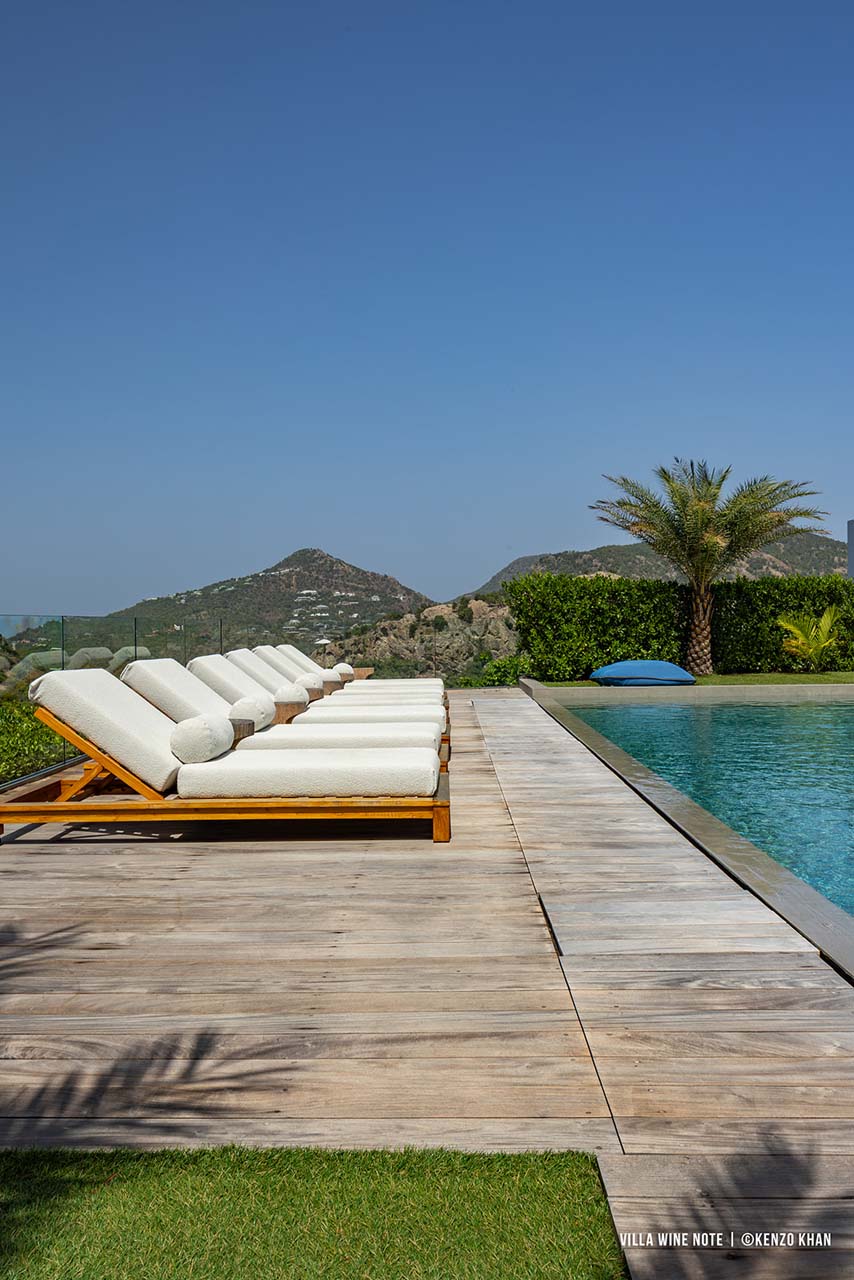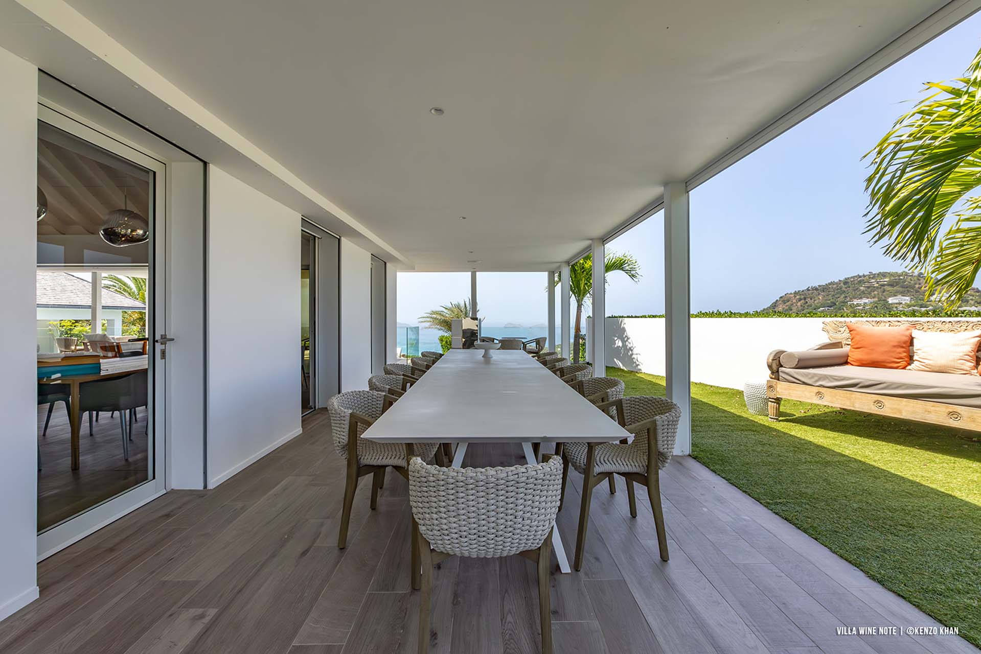 La villa est dotée d’une très grande piscine chauffée et d’une vue magnifique sur la baie de Saint Jean d’une part et sur Salines d’autre part. L’architecture moderne et les installations perfectionnées de la villa vous offrent tout le confort nécessaire pour un séjour en famille ou entre amis. Vous profiterez d’un espace extérieur parfaitement équipé, avec deux terrasses couvertes ainsi que d’une magnifique cascade d’eau partant du bungalow situé sur l’arrière de la villa et rejoignant la piscine. La villa, ayant pour thème le vin, possède également deux caves à vins pour les amateurs.
