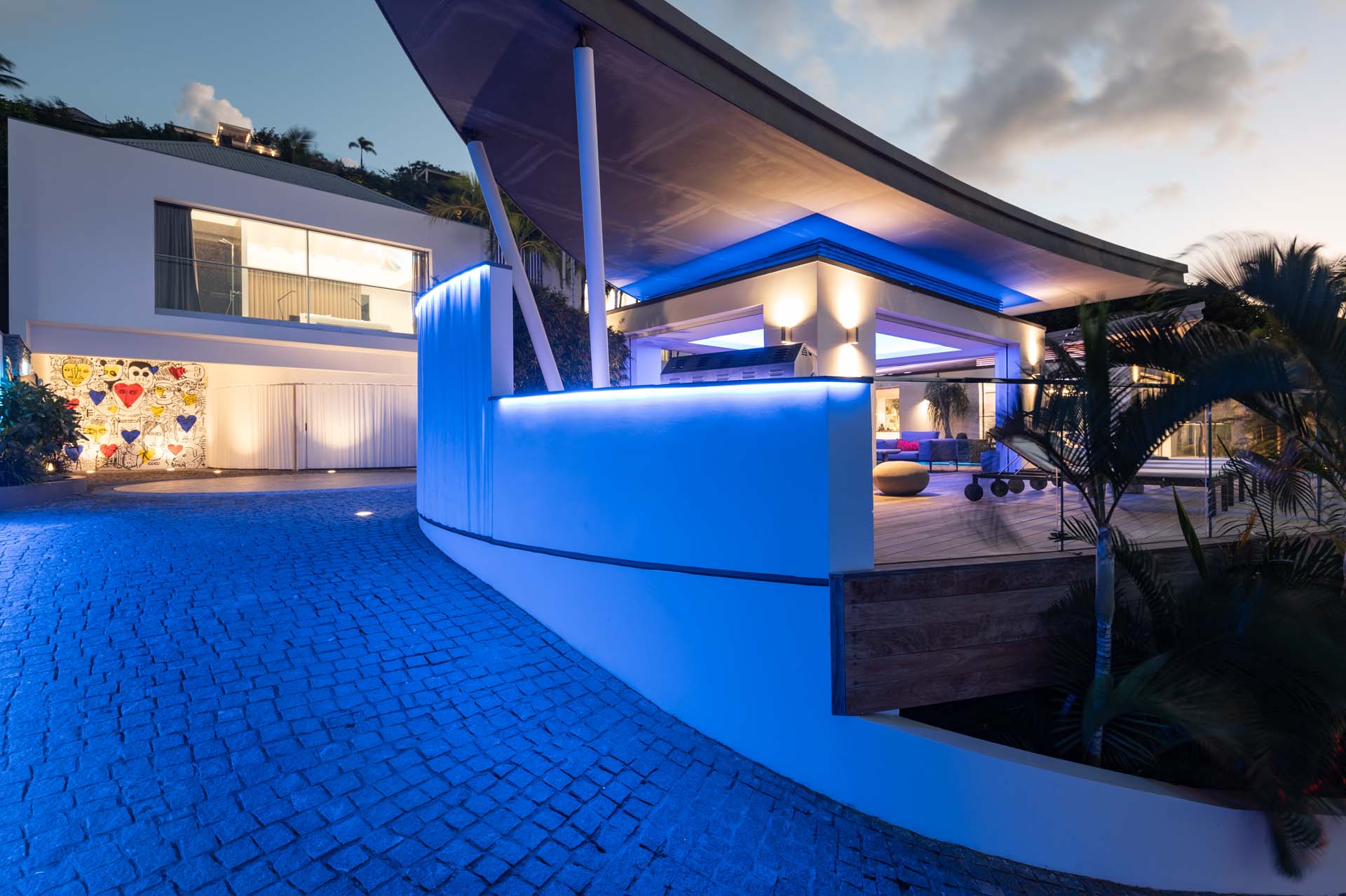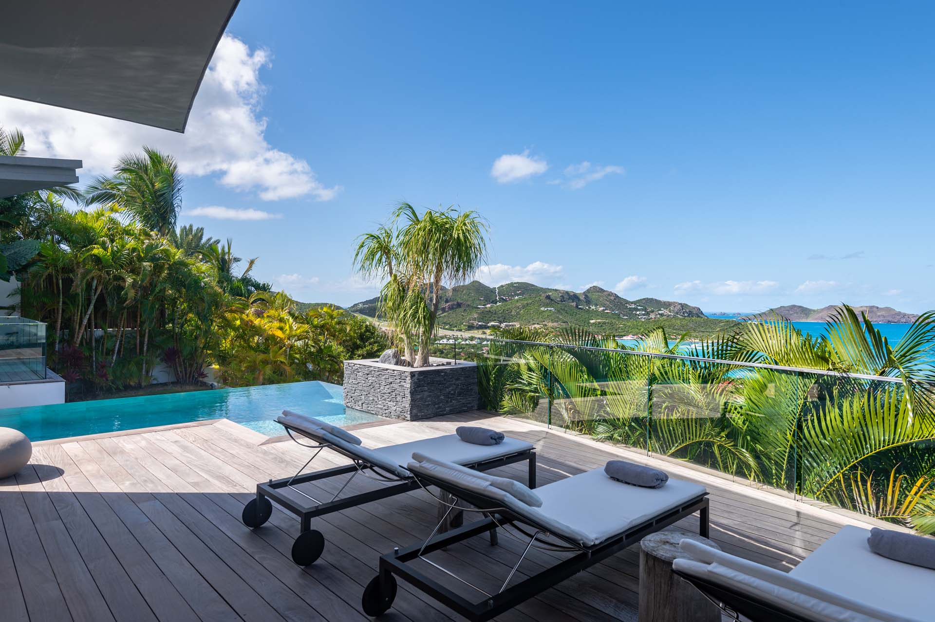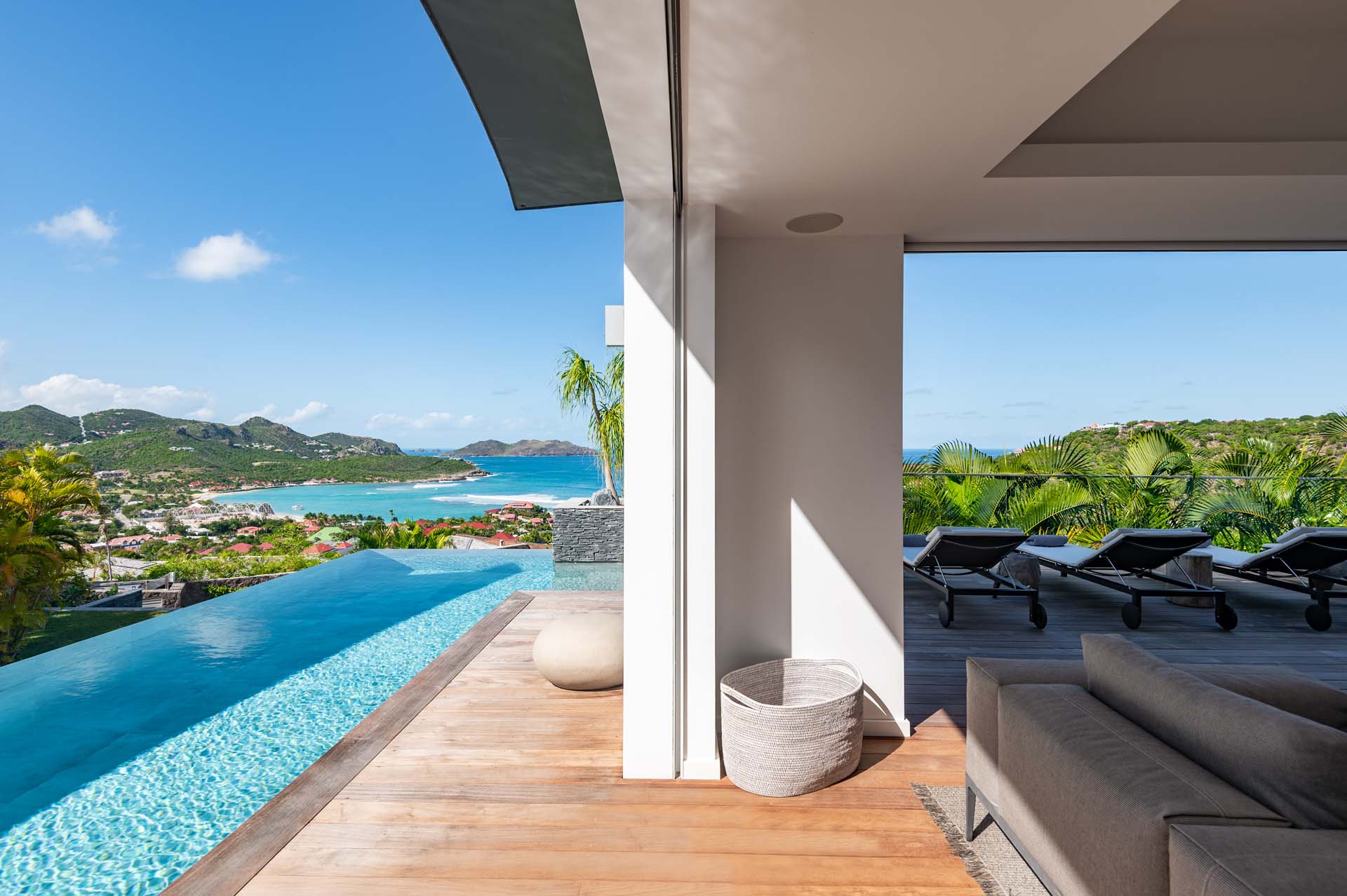Située sur les hauteurs de Saint Jean, à deux pas de la plage et de l’Eden Rock, cette extraordinaire villa embrasse toute la baie.