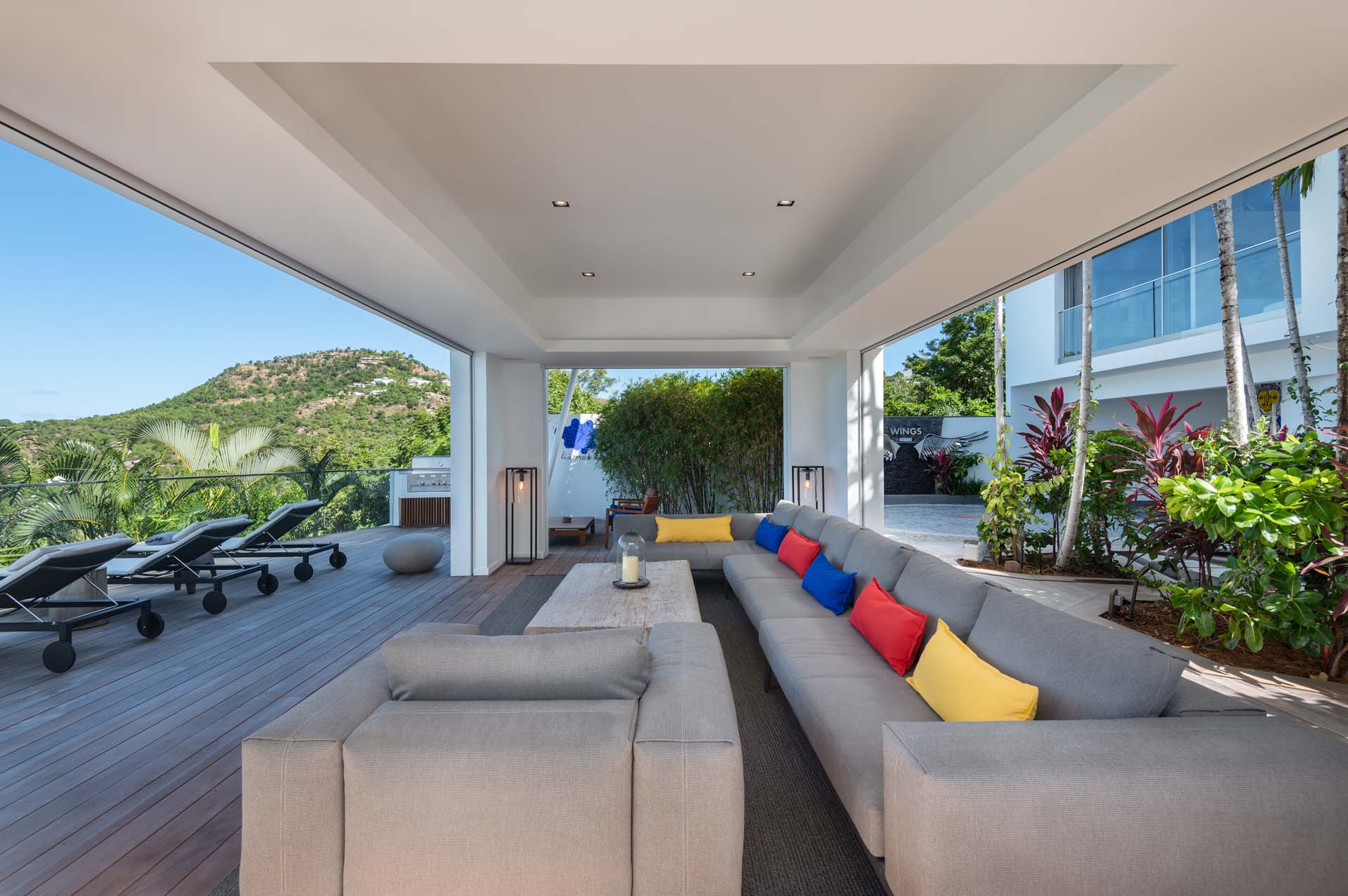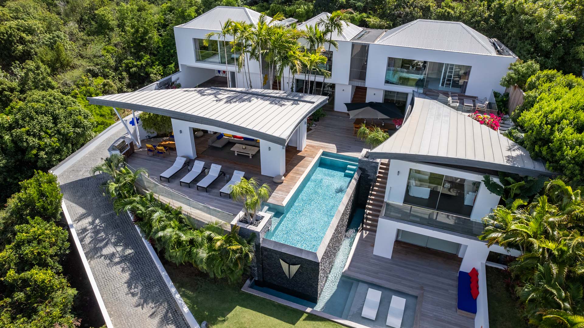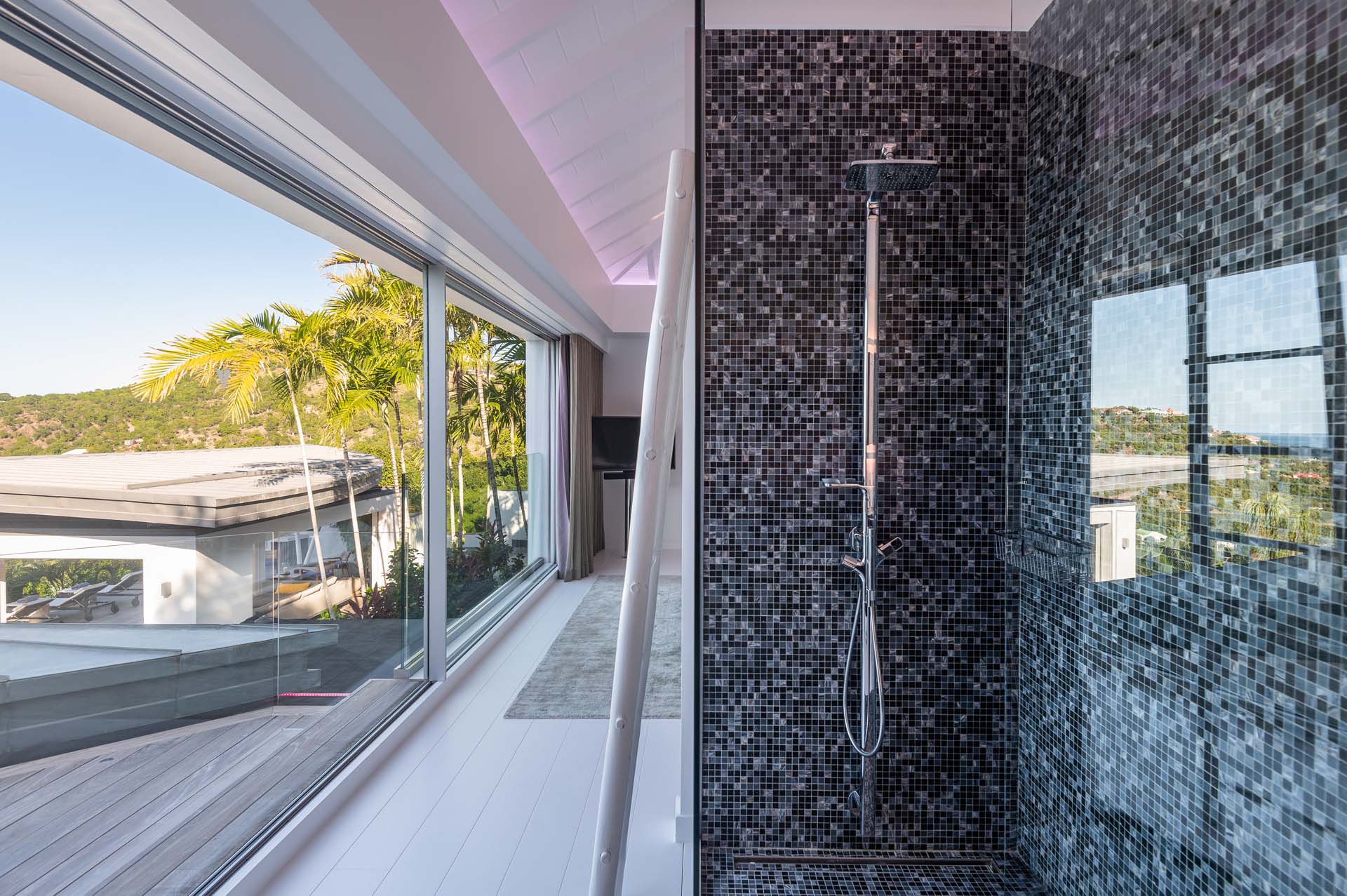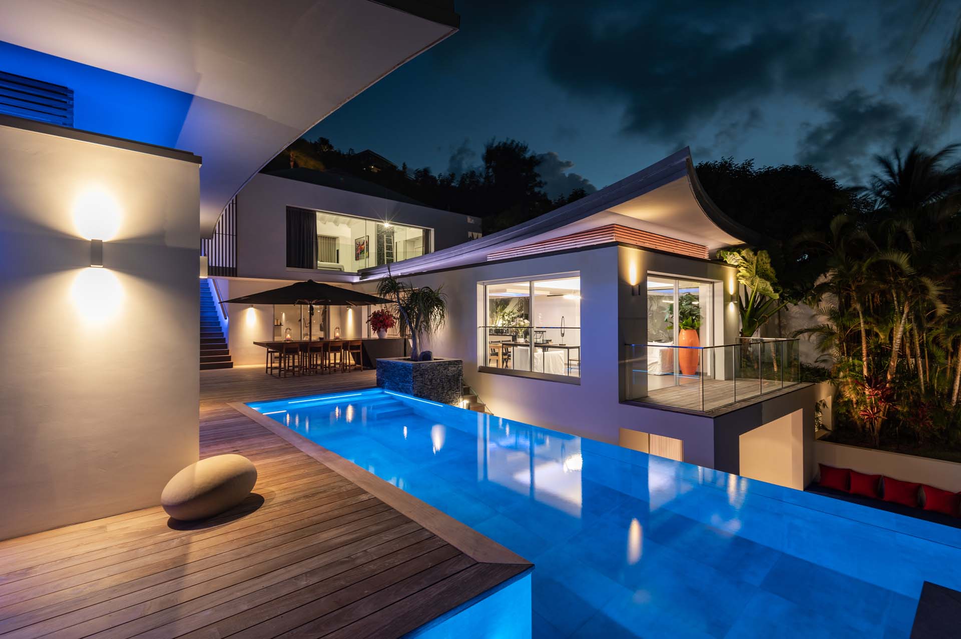 Située sur les hauteurs de Saint Jean, à deux pas de la plage et de l’Eden Rock, cette extraordinaire villa embrasse toute la baie.