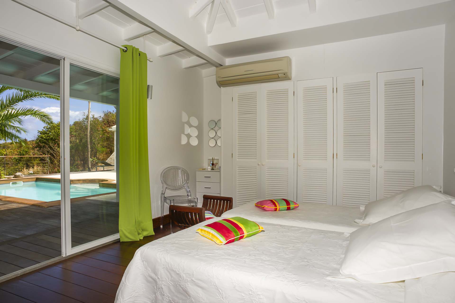 Les deux chambres ont une jolie vue et donnent sur la terrasse et la piscine.