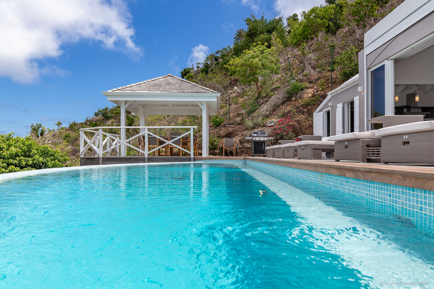 Avec une perspective époustouflante orientée vers le soleil couchant, cette propriété offre une vue imprenable sur les îles de Saint-Martin et Anguilla, ainsi que sur les collines verdoyantes de Saint-Barthélemy.