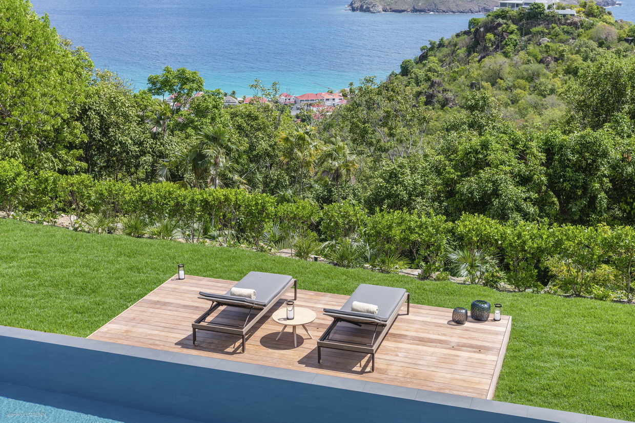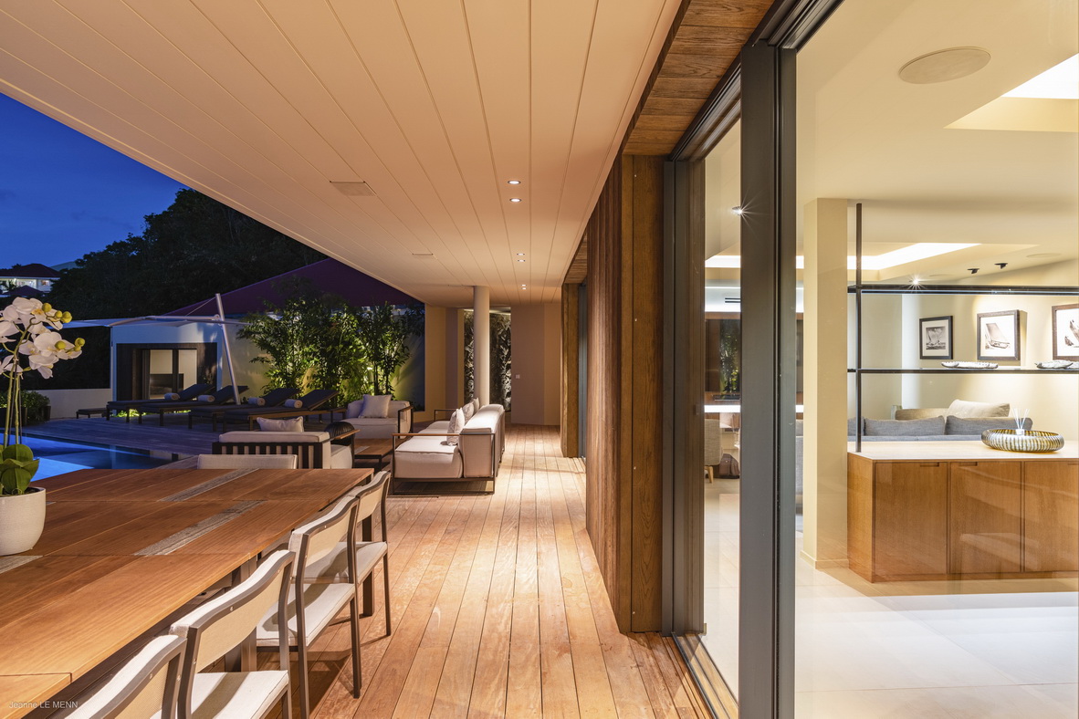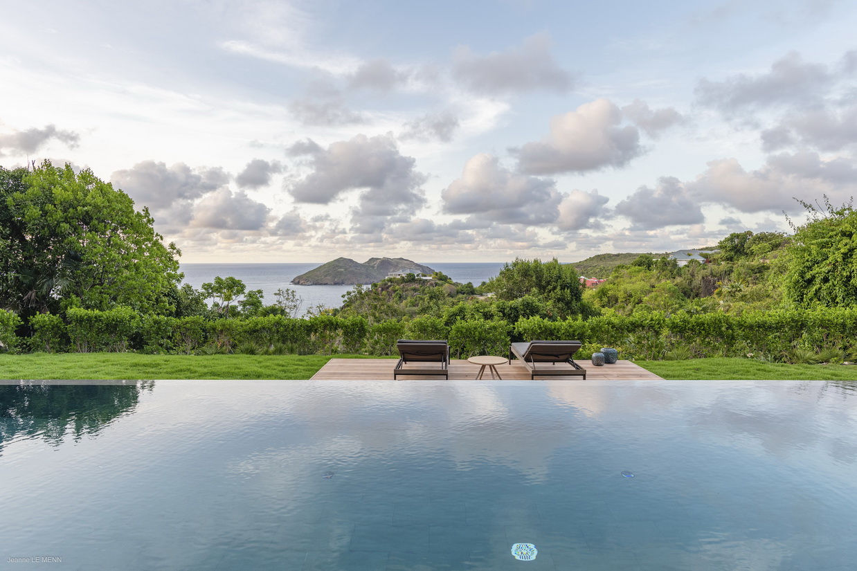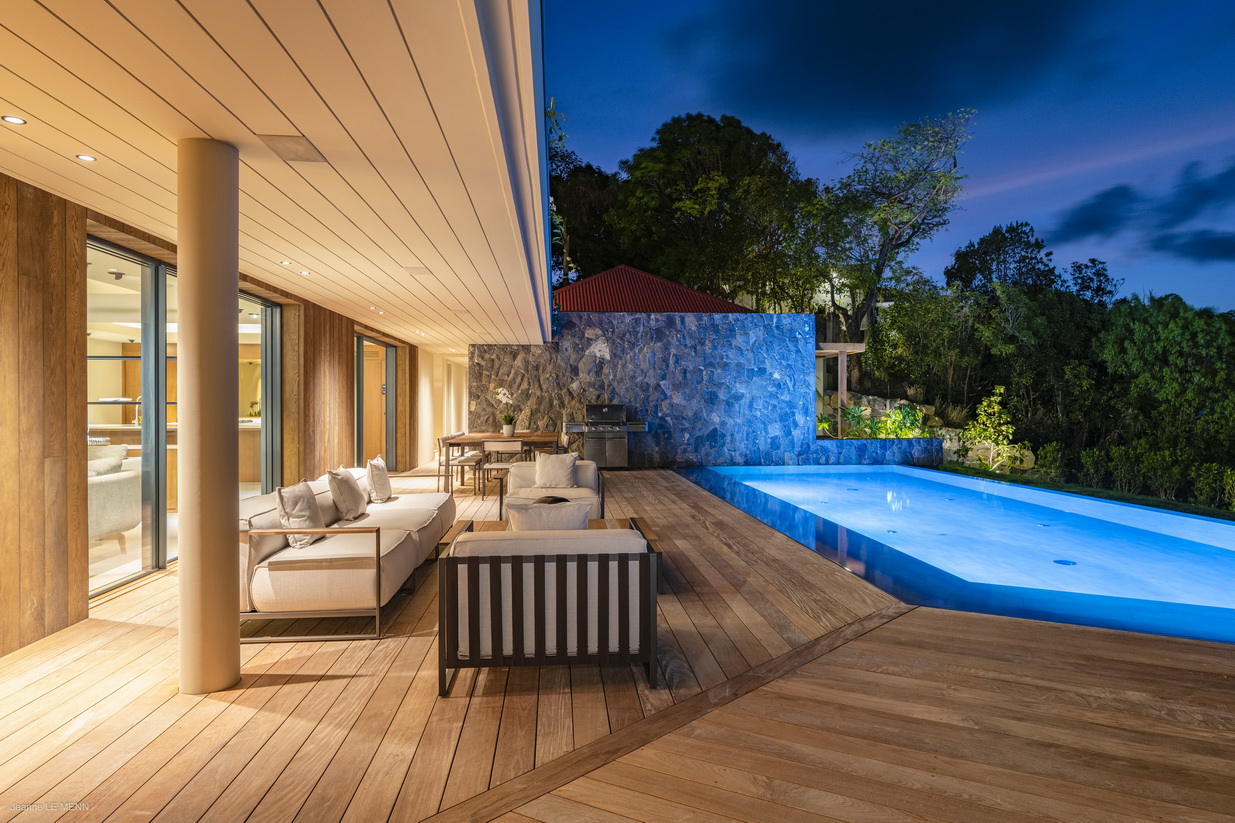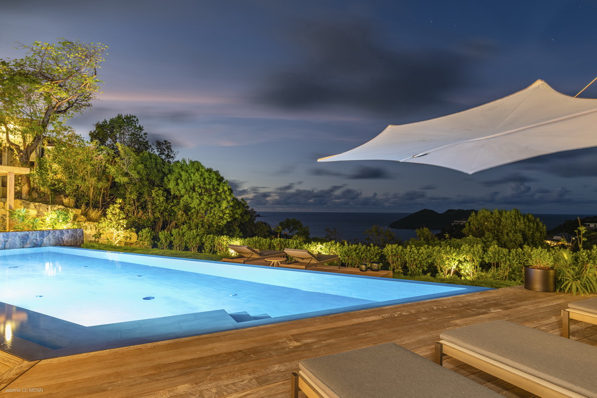 La terrasse est composée d’une piscine chauffée à débordement, d’un salon et d’une salle à manger extérieure pouvant accueillir jusqu’à 10 convives.