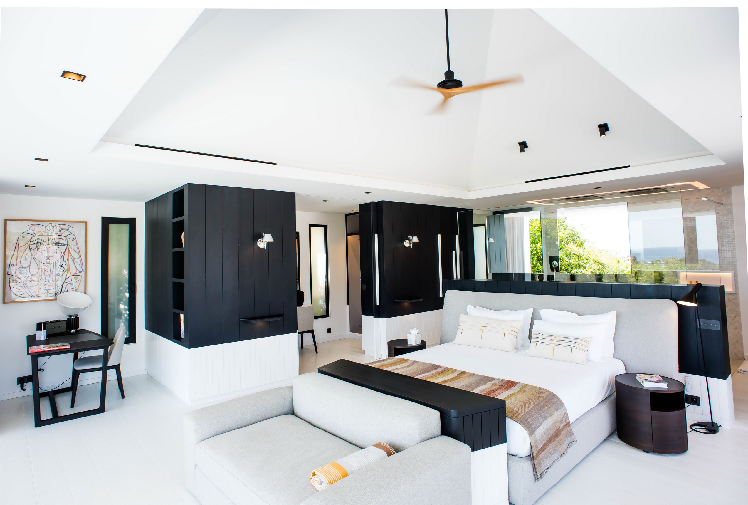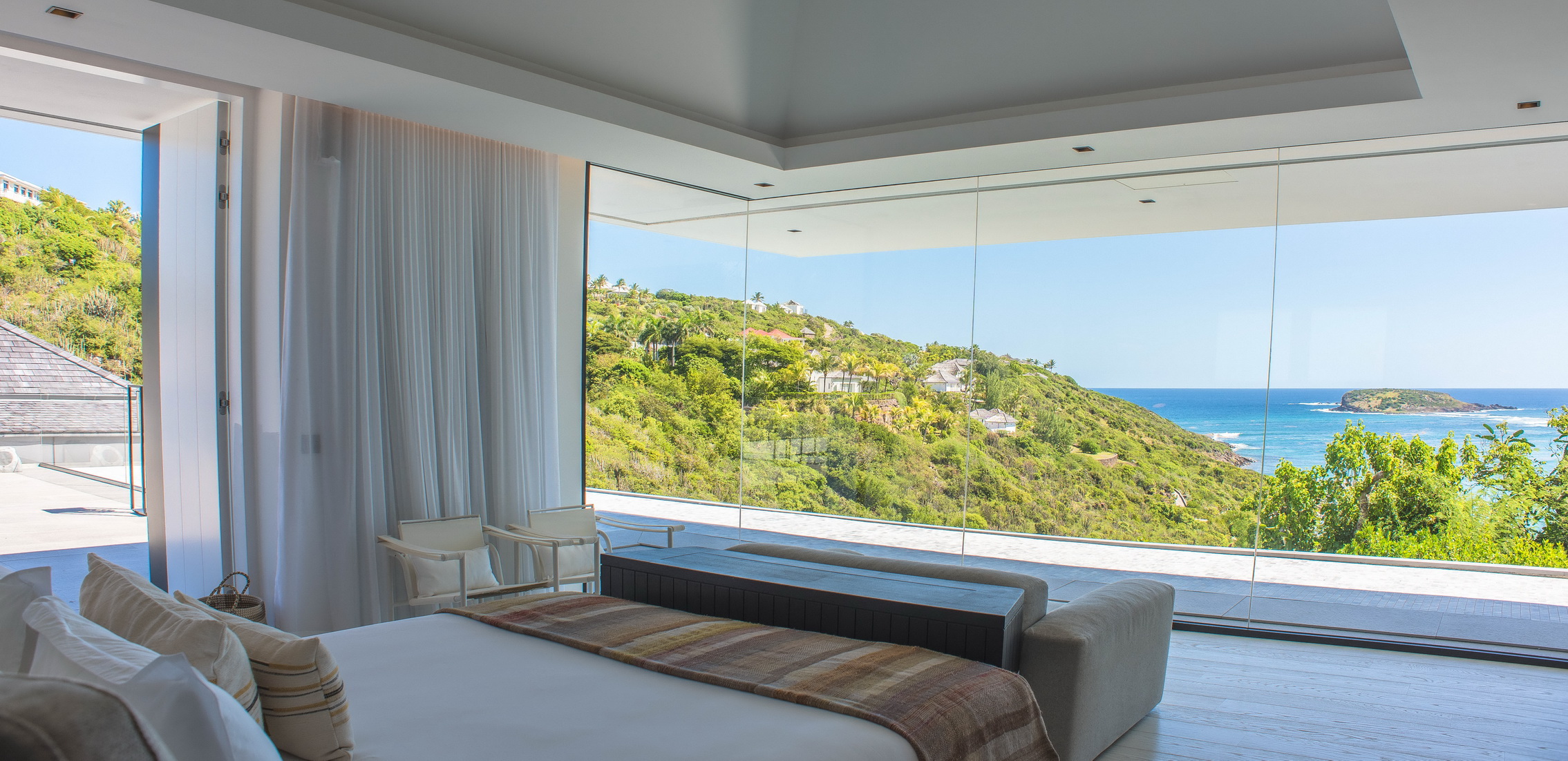 Les quatre chambres sont ultra bien équipées et ont toutes une vue sur la baie de Marigot.
