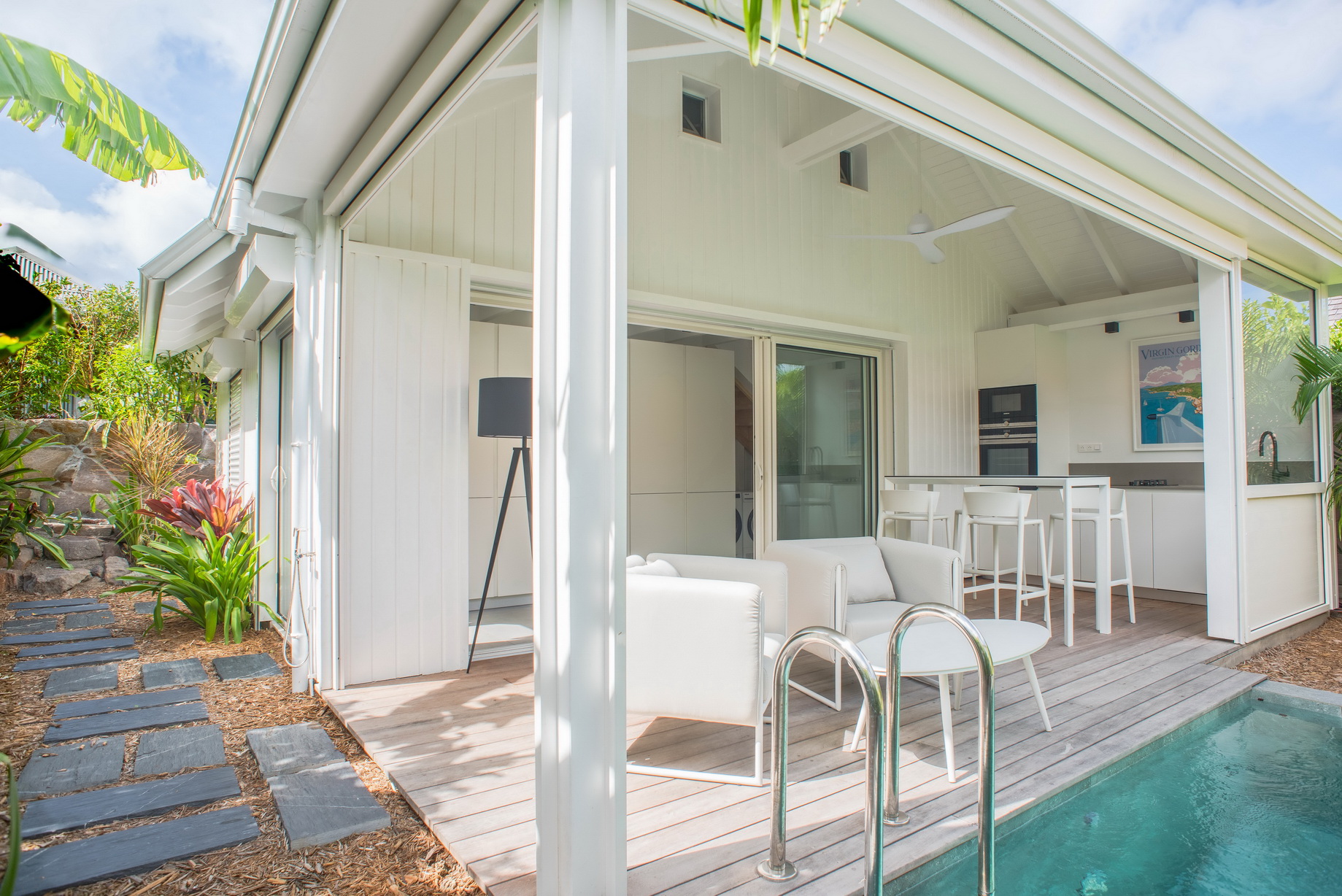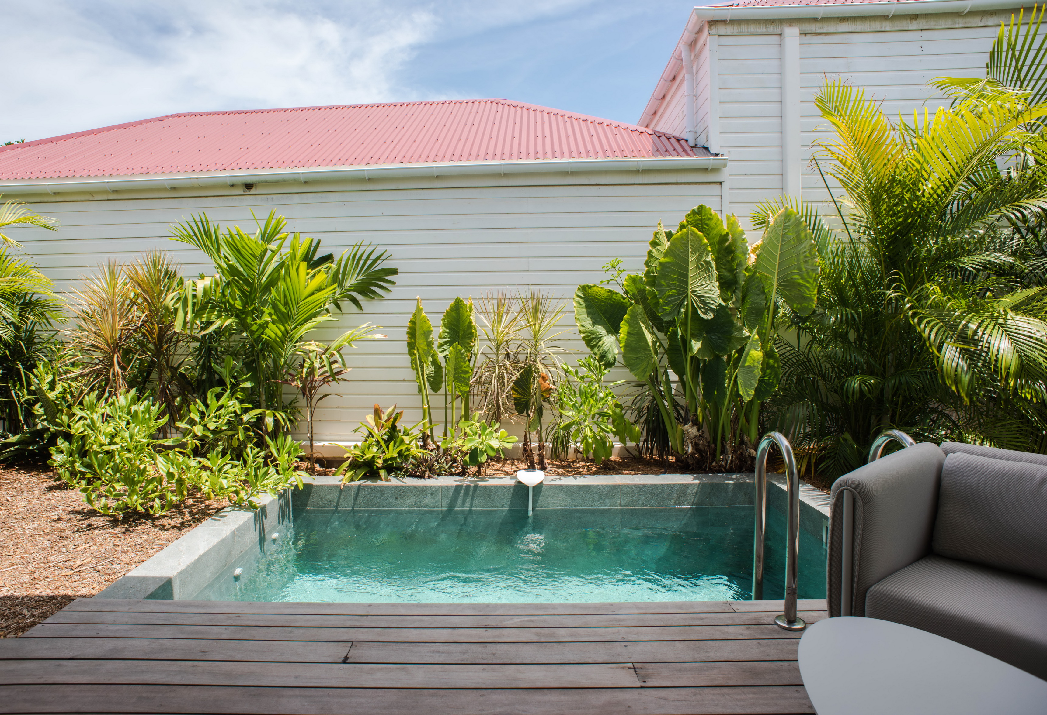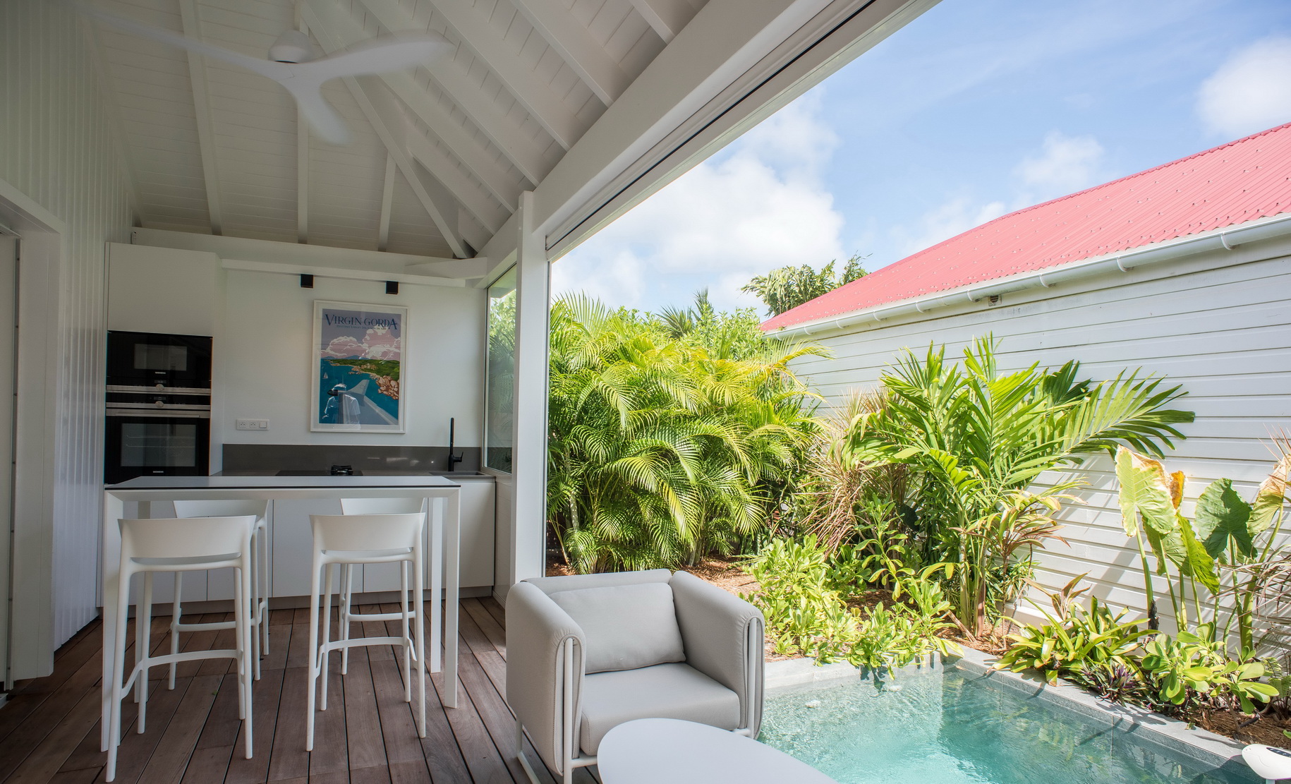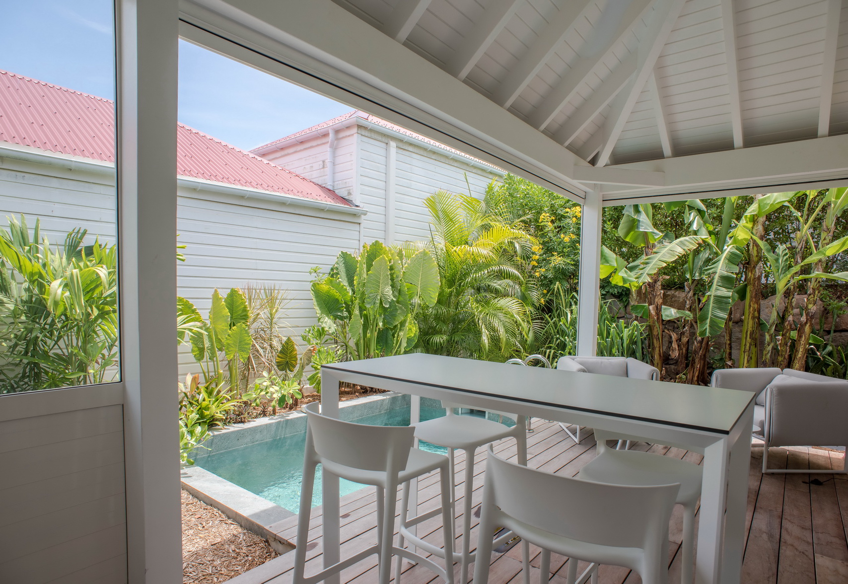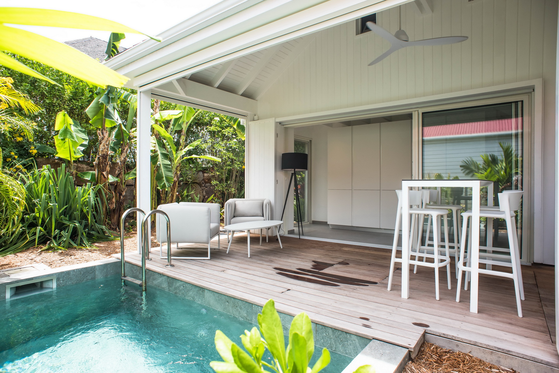 Situé dans une résidence exclusive à Pointe Milou, le bungalow « Obi Wan » est une construction neuve, jamais habitée, entouré d’un jardin tropical.